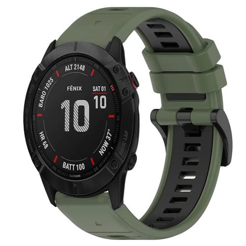 Correa Silicona Para Garmin Fenix 6X Sapphire 26mm Sports Dos Colores (Verde Oliva + Negro)
