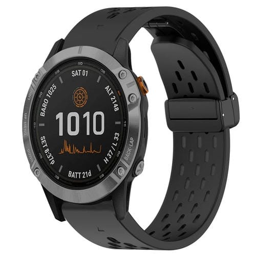 Correa de Silicona para Garmin Fenix 7 con Orificio y Hebilla Plegable 22mm (Negro)
