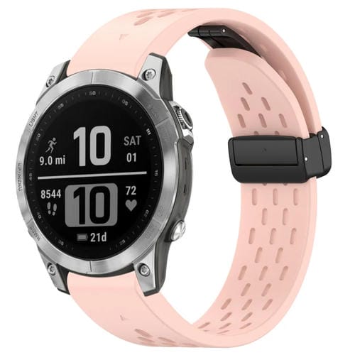Correa de Silicona para Garmin Fenix 7 y Fenix 7 Pro con Hebilla Plegable Magnética y Orificios 22mm (Rosa)