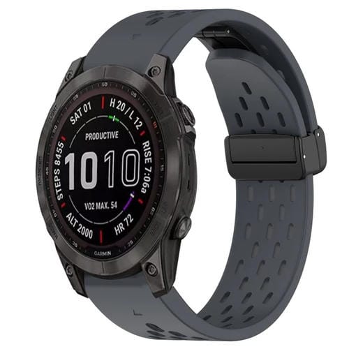 Correa de Reloj silicona para Garmin Fenix 7S Sapphire Solar con orificio y hebilla plegable 20mm (Gris Oscuro)