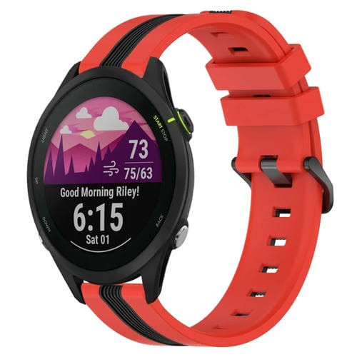 Banda de Reloj para Garmin Forerunner 255 Music 22mm Silicona Dos Colores Vertical (Rojo + Negro)