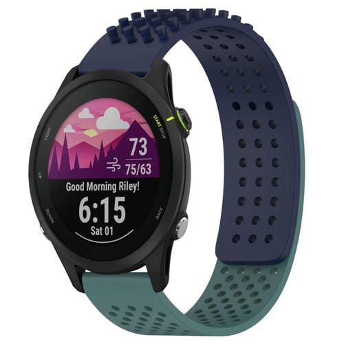 Correa de Reloj para Garmin Forerunner 255 Music de Silicona con Puntos 3D Transpirables y Orificios 22mm (Azul Medianoche + Verde Oliva)