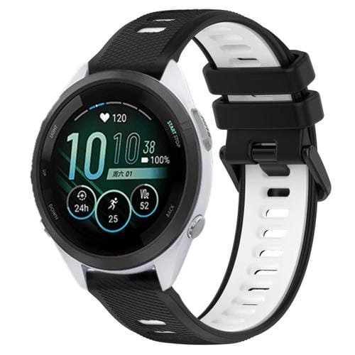 Banda de Silicona Deportiva 18mm para Garmin Forerunner 265S Music (Negro + Blanco)