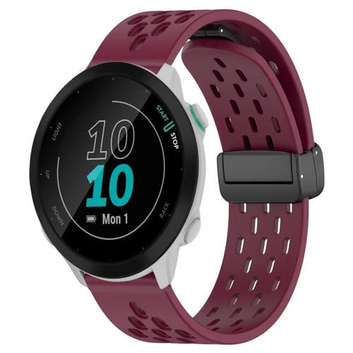 Correa de Reloj para Garmin Forerunner 55 de Silicona con Cierre Magnético Plegable de 20mm (Rojo Vino)