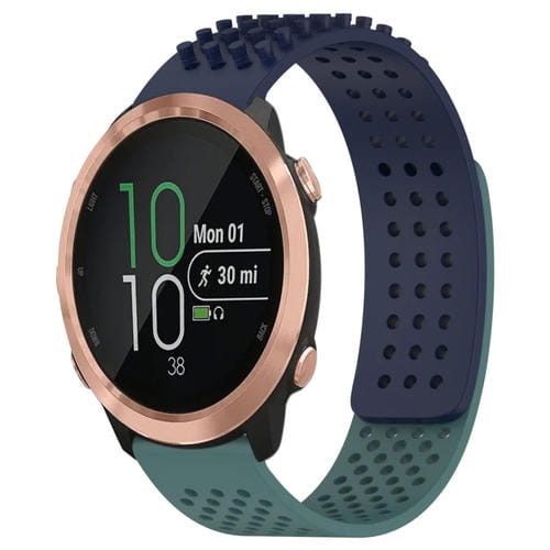 Correa de silicona para Garmin Forerunner 645 con puntos 3D transpirables y orificios de 20mm (Azul Medianoche + Verde Oliva)
