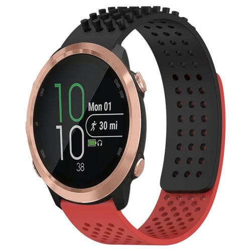 Correa de Silicona para Garmin Forerunner 645 con Puntos 3D Transpirables y Orificios de 20mm (Negro + Rojo)