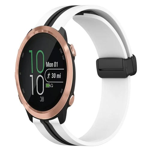 Correa de Reloj para Garmin Forerunner 645 Music 20mm Silicona Cierre Magnético Plegable (Blanco + Negro)