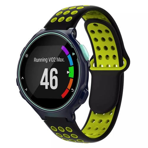 Banda de Reloj silicona para Garmin Forerunner 735 / 735Xt transpirable perforada dos colores (Negro + Amarillo)