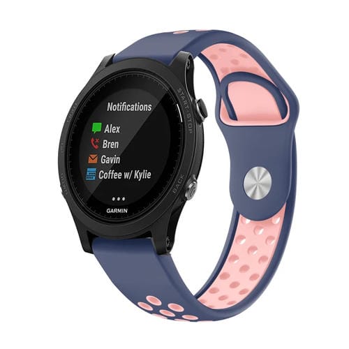 Banda de Reloj de Silicona para Garmin Forerunner 935 22mm Deportes (Azul Medianoche + Rosa)