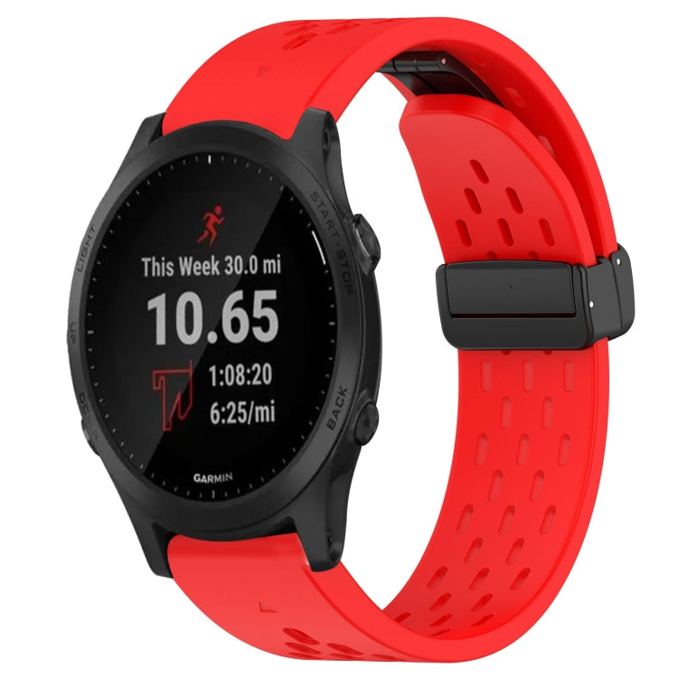 Correa de Reloj de Silicona para Garmin Forerunner 945 con Orificio y Hebilla Plegable de 22mm (Rojo)