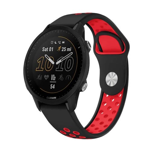 Banda de Reloj para Garmin Forerunner 955 22mm Sports Silicona Transpirable (Negro + Rojo)