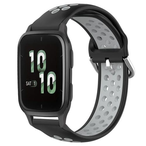 Banda de Reloj Silicona Deportiva para Garmin Forerunner Sq2 20mm Transpirable (Negro + Gris)