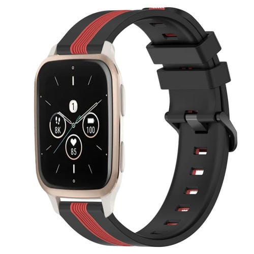 Banda de Reloj de Silicona Para Garmin Forerunner Sq2 Music 20mm Dos Colores Vertical (Negro + Rojo)