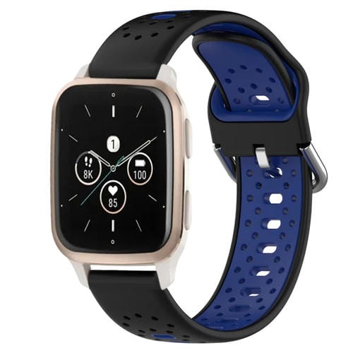 Banda de Reloj Garmin Forerunner Sq2 Music 20mm Silicona Transpirable Dos Colores (Negro + Azul)