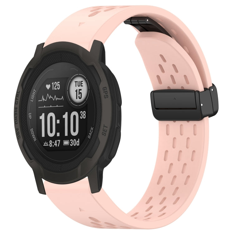 Correa de Reloj de Silicona para Garmin Instinct 2 y Instinct con Hebilla Plegable Magnética y Orificios 22mm (Rosa)