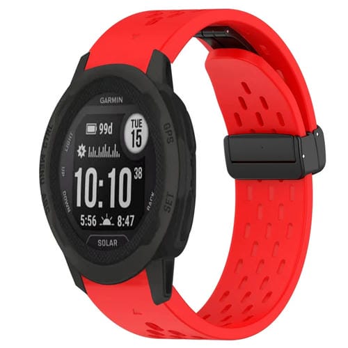 Correa de Silicona para Garmin Instinct 2S con Orificio y Hebilla Plegable 20mm (Rojo)