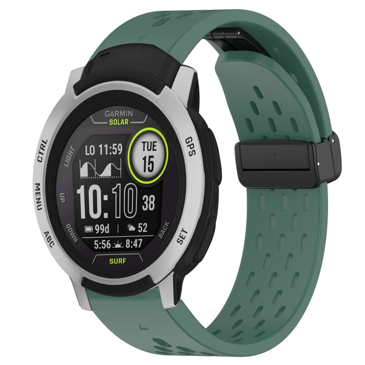 Correa de Reloj de Silicona para Garmin Instinct con Orificio y Hebilla Plegable 22mm (Verde Oscuro)
