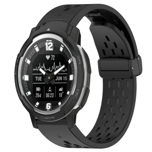 Correa de Silicona para Garmin Instinct Crossover 22mm con Orificio y Hebilla Plegable (Negro)
