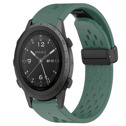 Correa de Reloj para Garmin Marq Commander de Silicona con Orificio y Hebilla Plegable 22mm (Verde Oscuro)
