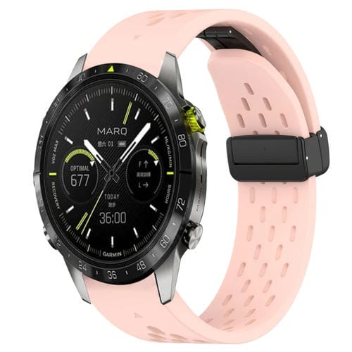 Correa de Reloj para Garmin Marq con Orificios de Liberación Rápida y Hebilla Magnética (Rosa)