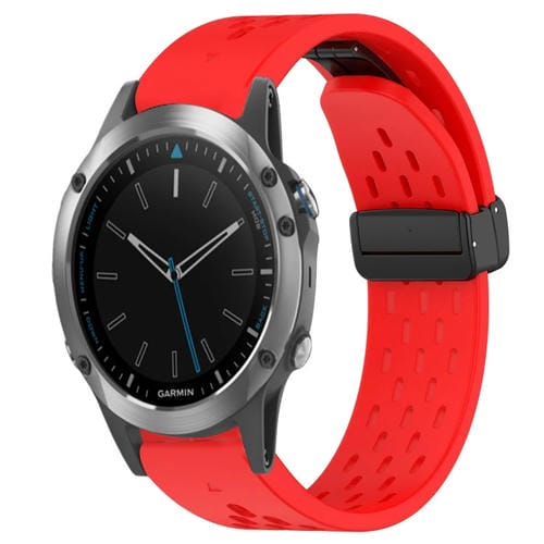 Correa de Reloj Silicona para Garmin Quatix 5 con Hebilla Plegable y Orificio 22mm (Rojo)