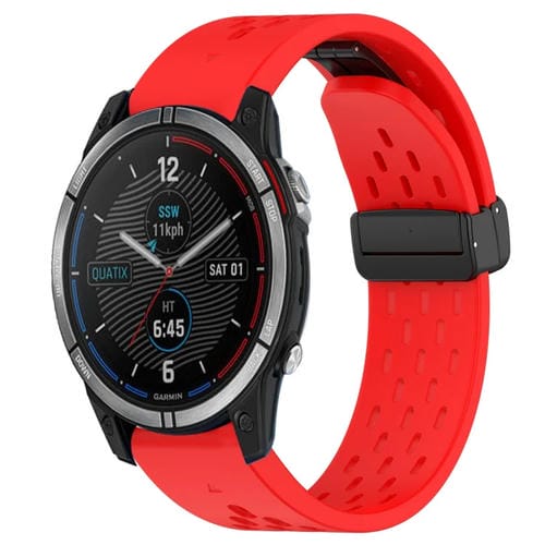 Correa de Silicona para Garmin Quatix 7 con Orificio y Hebilla Plegable 22mm (Rojo)