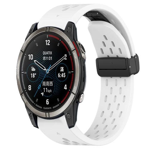 Correa de Silicona para Garmin Quatix 7 Pro con Orificio y Hebilla Plegable de 22mm (Blanco)