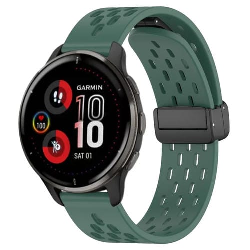 Correa de Silicona para Garmin Venu 2 Plus con Cierre Magnético Plegable de 20mm (Verde Oscuro)