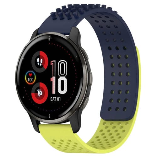 Correa de Reloj para Garmin Venu 2 Plus Silicona Puntos 3D Transpirable 20mm (Azul Medianoche + Verde Lima)