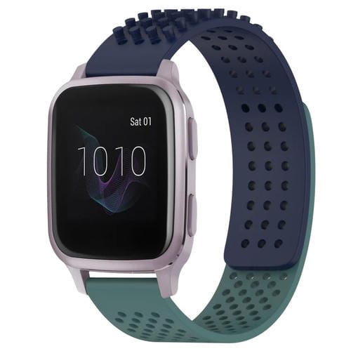 Correa de Silicona para Garmin Venu Sq con Puntos 3D Transpirables y Orificios 20mm (Azul Medianoche + Verde Oliva)
