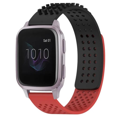 Correa de Silicona para Garmin Venu Sq con Puntos 3D Transpirables y Orificios de 20mm (Negro + Rojo)