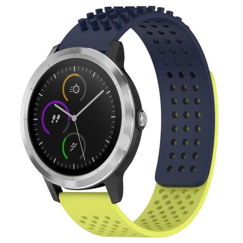 Correa de Silicona para Garmin Vivoactive 3 con Puntos 3D Transpirables y Orificios de 20mm (Azul Medianoche + Verde Lima)