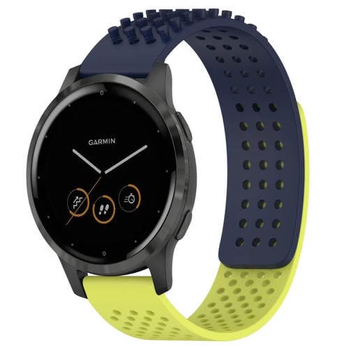 Correa de Silicona para Garmin Vivoactive 4 con Puntos 3D Transpirables y Orificios de 22mm (Azul Medianoche + Verde Lima)