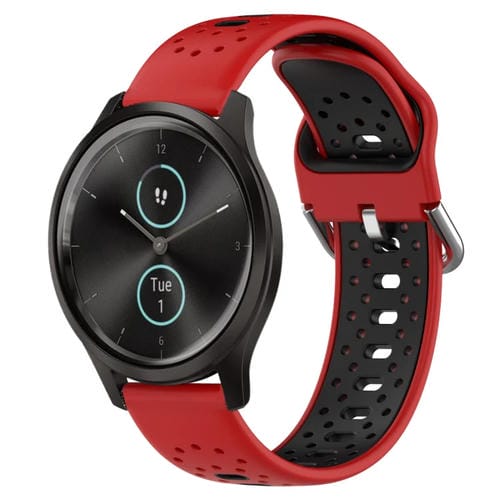 Banda de Reloj Garmin Vivomove Style 20mm Silicona Transpirable Dos Colores (Rojo + Negro)