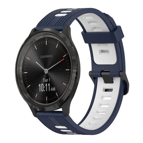 Banda de Reloj de Silicona para Garmin Vivomove3 20mm Patrón Vertical (Azul Oscuro+Blanco)