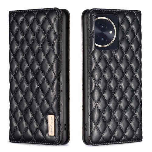 Funda para Honor 100 con Tapa de Cuero Magnético Diamond Lattice (Negro)
