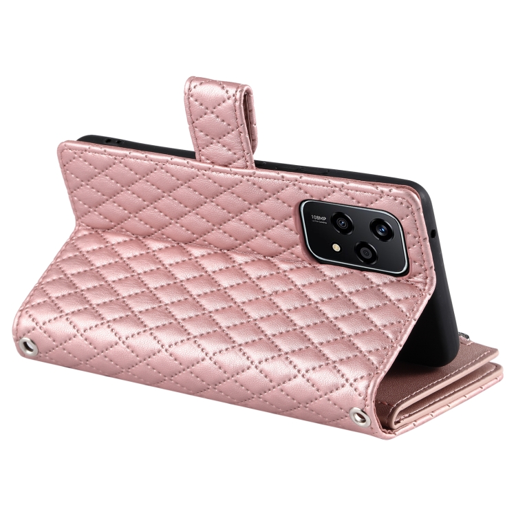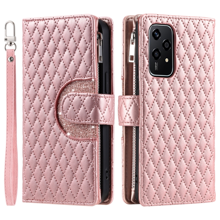 Funda de Cuero para Honor 200 Lite Glitter Lattice Zipper Wallet para Teléfono (Oro Rosa)