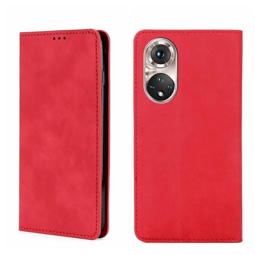 Funda para Honor 50 Pro Skin Feel Magnetic Horizontal Flip de Cuero (Rojo)
