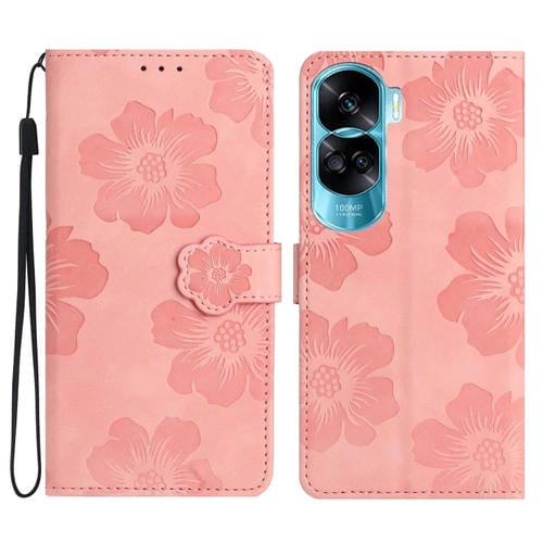 Funda de Cuero para Honor 90 Lite con Estampado de Flores (Rosa)
