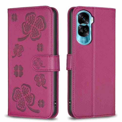 Funda para Honor 90 Lite X50I de Cuero con Relieve de Cuatro Hojas (Rojo Rosa)