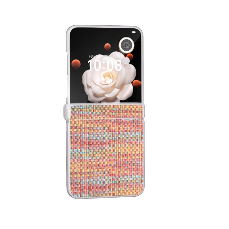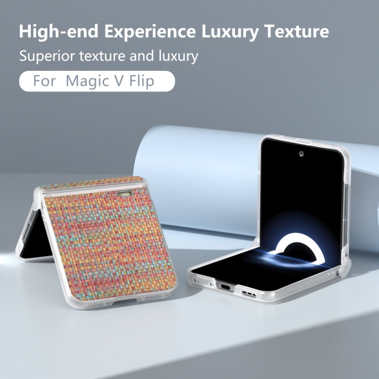 Estuche para Honor Magic V Flip de PU con Textura Celosía y Marco Translúcido Esmerilado (Mandarina)
