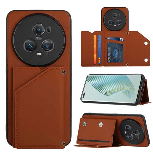 Funda para Honor Magic5 Pro Skin Feel PU + TPU con Ranuras para Tarjetas para PC (Marrón)