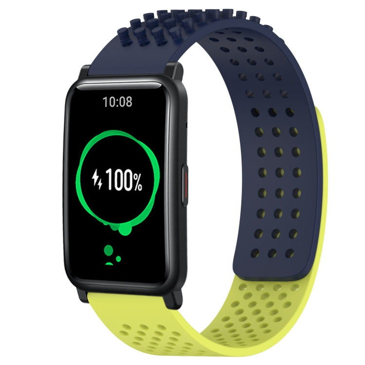 Para Honor Watch Es Correa de Reloj de Silicona con Puntos 3D Transpirables con Orificios de 20mm (Azul Medianoche + Verde Lima)