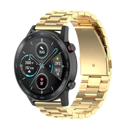 Correa de Reloj de Metal para Honor Watch GS 3I 22mm Tres Cuentas Acero Inoxidable (Oro)