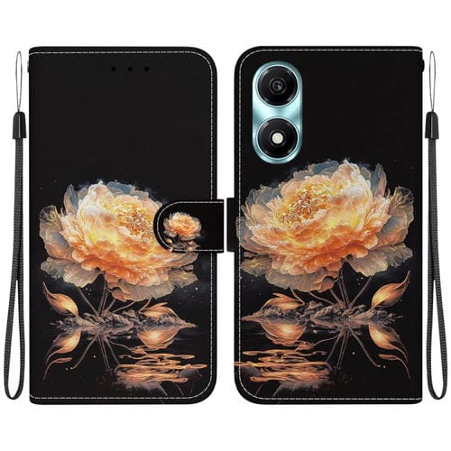 Funda para Honor X5 Plus / Play 40C de Cuero con Dibujo Coloreado y Textura de Cristal (Peonía Dorada)