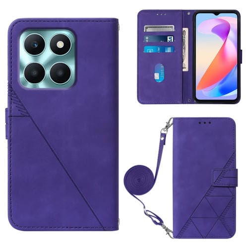 Funda para Honor X6A Crossbody de Cuero con Tapa en Relieve 3D (Púrpura)