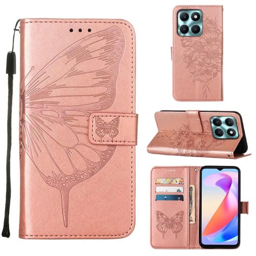 Funda de Cuero para Honor X6A con Mariposa en Relieve (Oro Rosa)