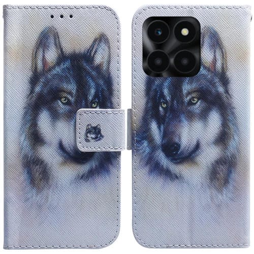 Funda de Cuero para Honor X6A con Tapa y Dibujo Coloreado (Lobo Blanco)