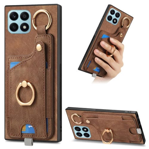Funda para Honor X8A con Bolsa para Tarjeta, Anillo y Lazo para Colgar (Marrón)