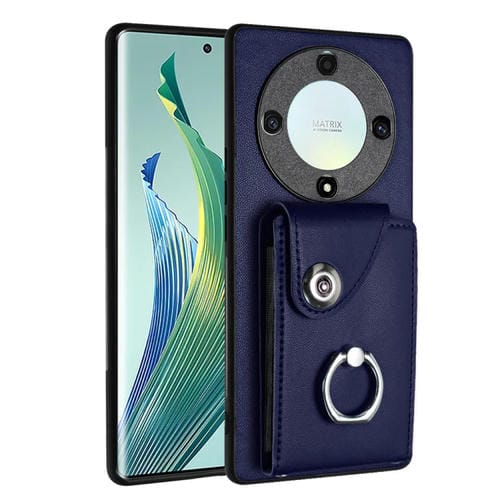 Funda para Honor X9A y Magic5 Lite de PU con Soporte para Anillo y Bolsa para Tarjeta (Azul)